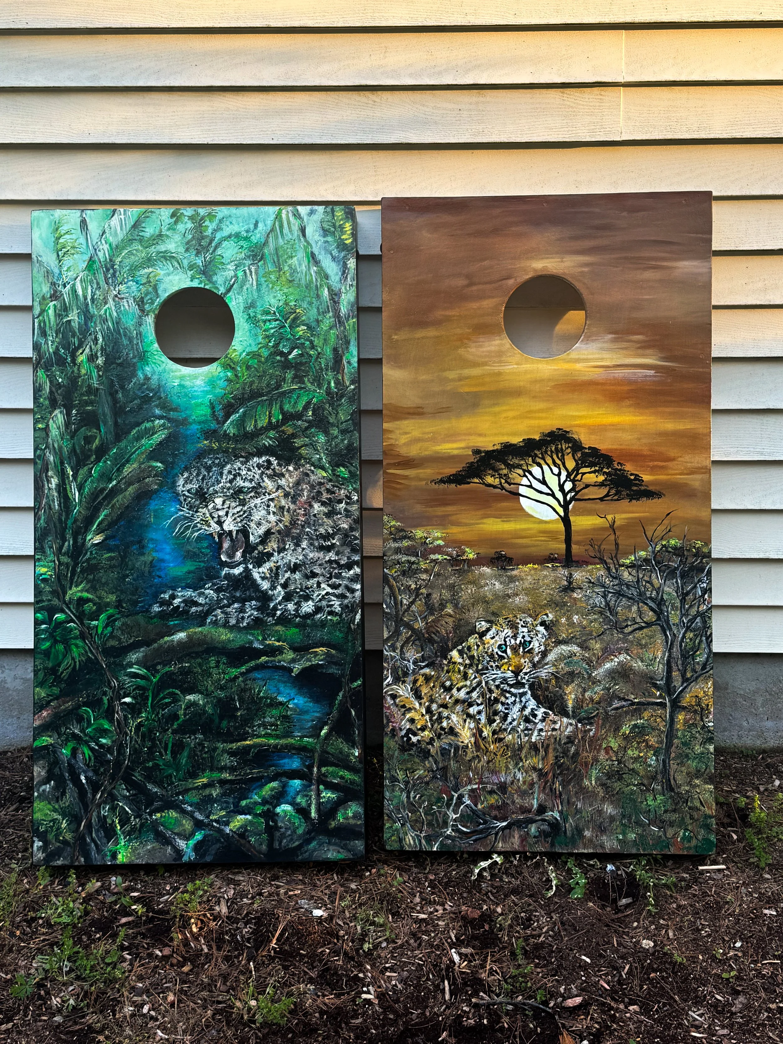 Superbowl-Corn Hole Game $980.00 Red Sox-Corn Hole Game $980.00 Margariteville-Corn Hole Game $980.00 Illusions $800.00 Leopard in the Wild $700.00 Marvel $800.00 Cozy Library $800.00 Washington $800.00 Fantasy Beings $800.00 Old Building $350.00 GIFT CARD from $50.00